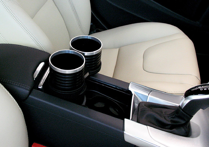 視界/操作に影響のないベストポジション設計。 スポーツドライビング時でも運転操作を邪魔することなくセーフティドライビングをサポート。 2. ベース部にブラック・ポリウレタン採用 製品ベース部を梨地柄の スムーズ加工にすることで、純正インテリアにも違和感なく溶け込む仕様にしました。 3. 多様化する缶/ボトルに対応 開口部の容量を大きく採ることで、 ペットボトル、缶、カップを選ばずに使用可能です。 ドリンクホルダーとして使用する以外にも携帯TEL、 iPod をはじめとした携帯ミュージックプレーヤー、 カーナビゲーションのリモコン等も楽々と収納できます。 |