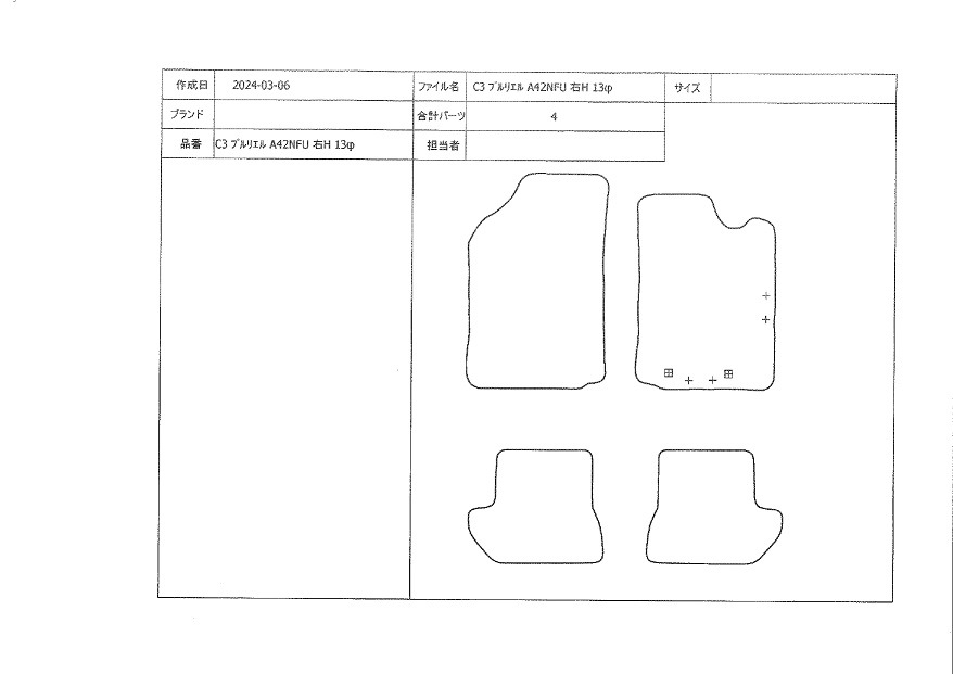 C3 プルリエル | 2005/4~2008/3 | A42NFU | 右 | F2+R2 | 純正フック非対応 真円リング13Φ +マジックテープ |