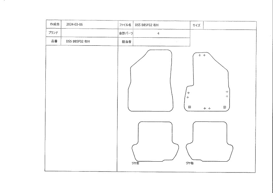 DS5 カーゴマット | 2012/8~2014/5 | B85F02 | 右 | 1 | - |