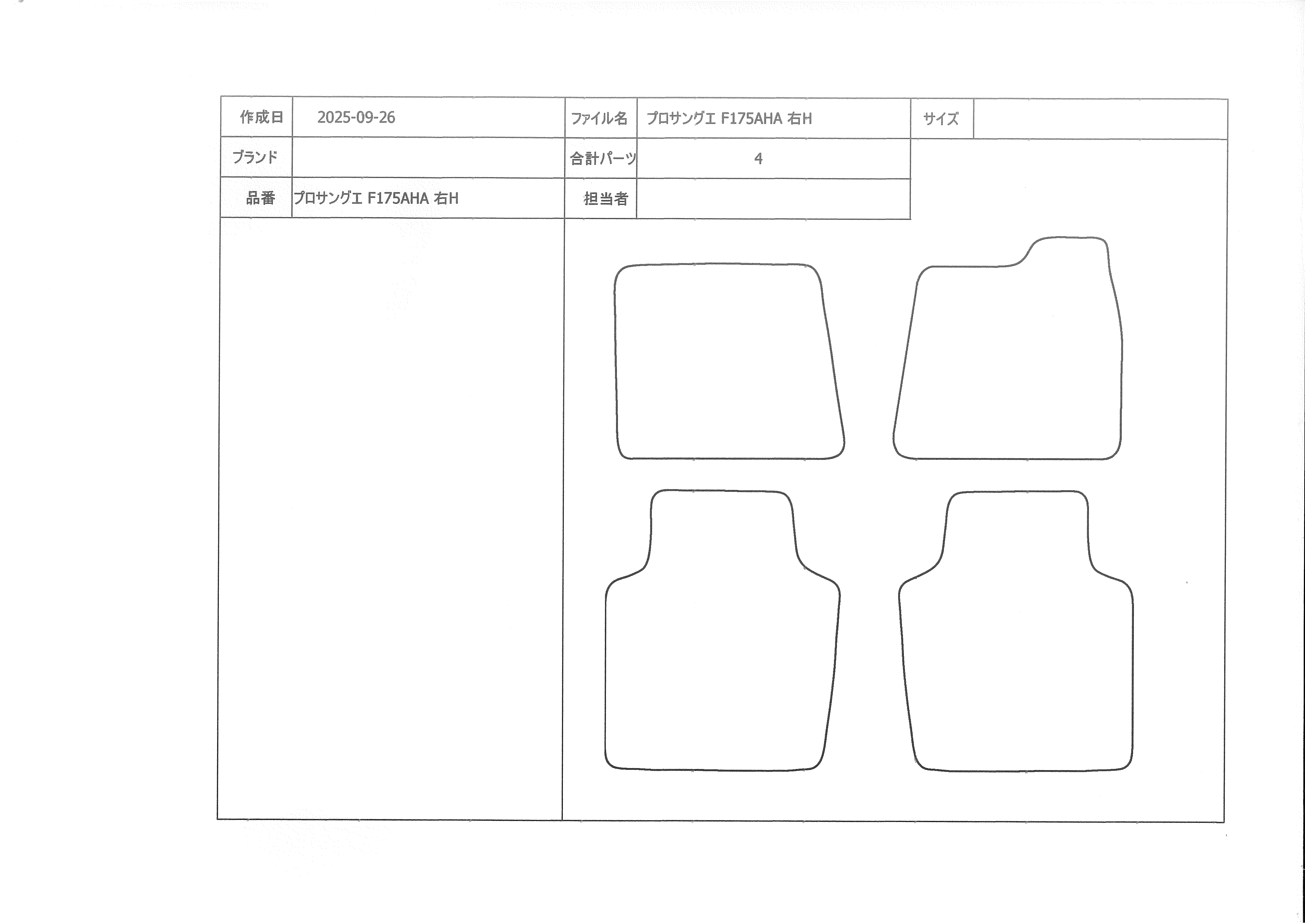 プロサングエ | 2022/9~ | F175AHA | 右 | F2+R2 | SH無し仕様 |